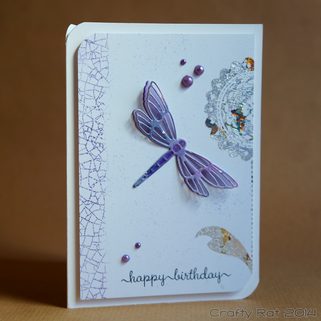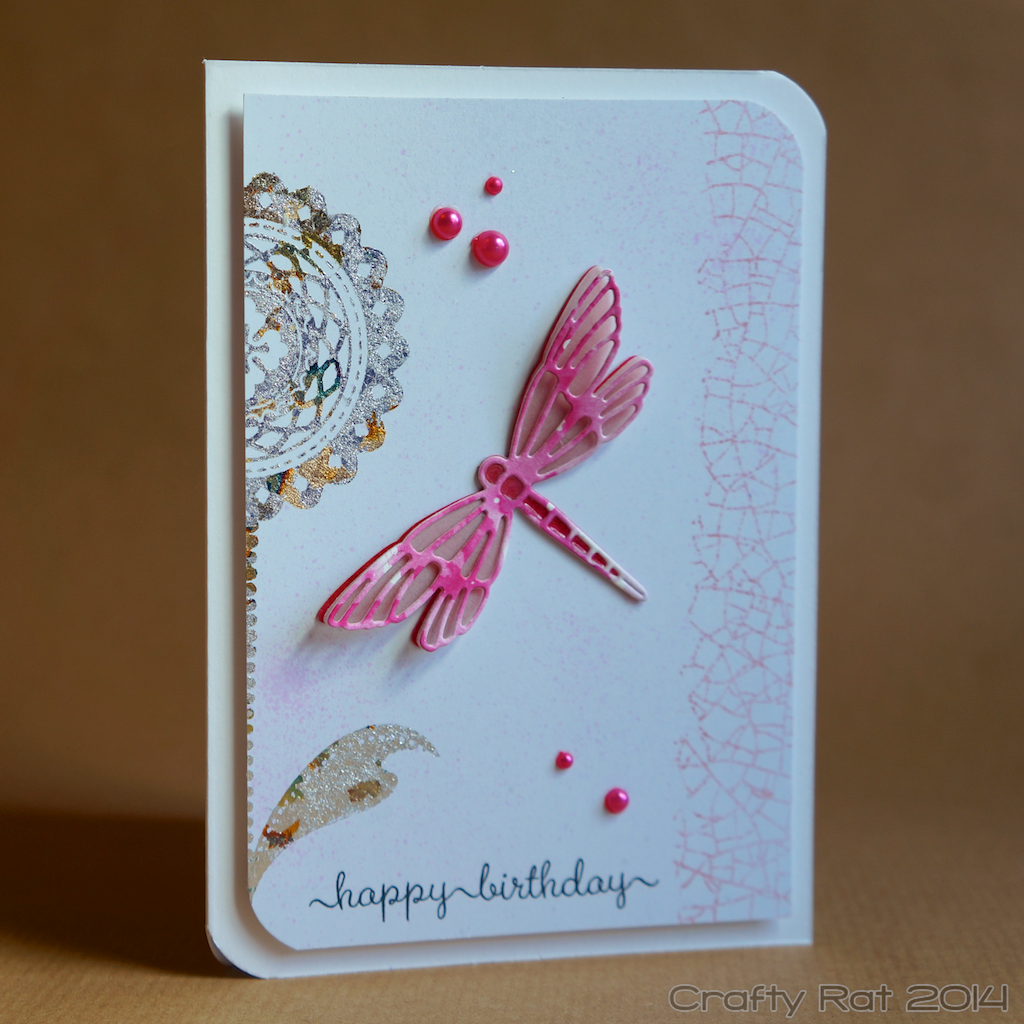 A matched pair of cards created for twin girls. I didn’t want to simply create two identical cards that differed only in their main colour, so I extended the idea by making them into mirror images and splitting the central stamp over the two cards.