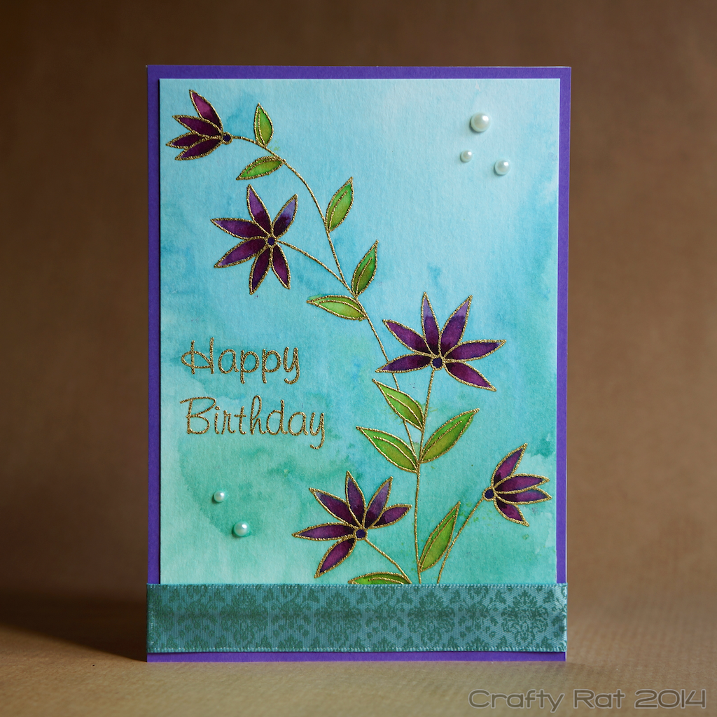 My first experiment with using Distress inks as watercolours with an embossed outline stamp.