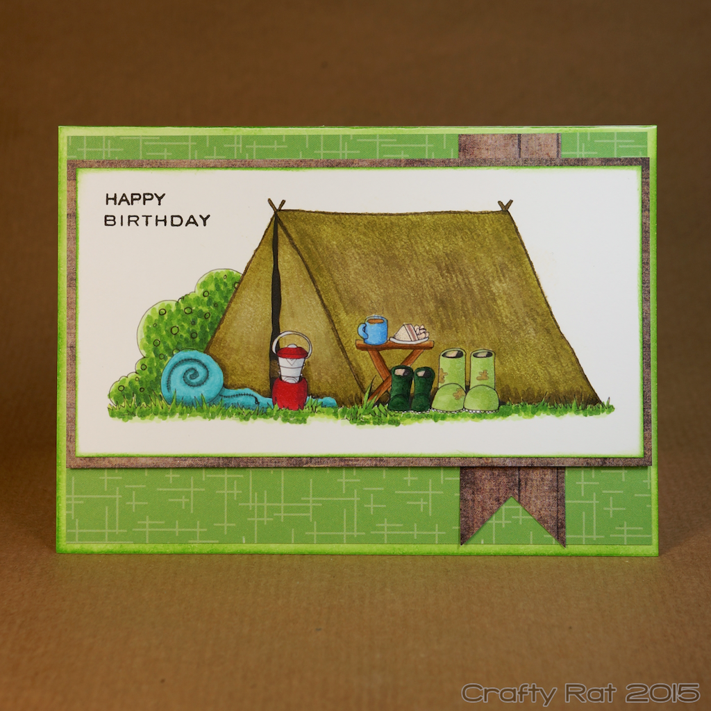 The always tricky problem of creating cards for men – luckily I managed to find a cute digi stamp that works just perfectly for my other half’s dad, who runs a scout group.