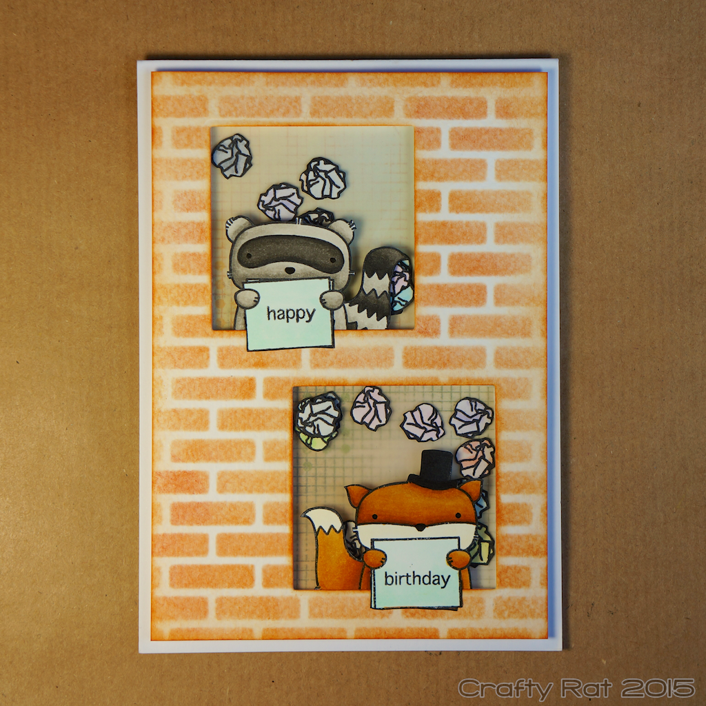 Before fixing the acetate in place, I remembered to mark the position of the windows on the card base so I could glue the window background papers in the right place. I also added a layer of vellum over the backgrounds, just to tone down the pattern so it didn’t distract from the cute critters.