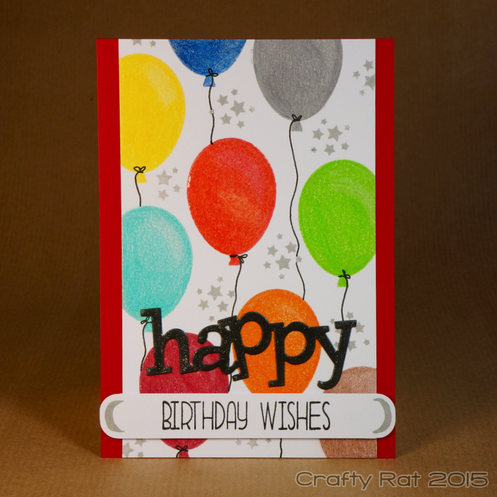 I randomly stamped the balloons in different colours across the card panel and then went over them with coloured pencil in a less than successful attempt to add some shading.
