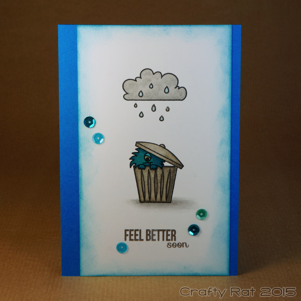 I coloured the images with Copic markers and went over the outlines of the creatures with a Memento marker to give him a bit more definition. The raindrops and trash can were covered with Wink of Stella to give a little sparkle.