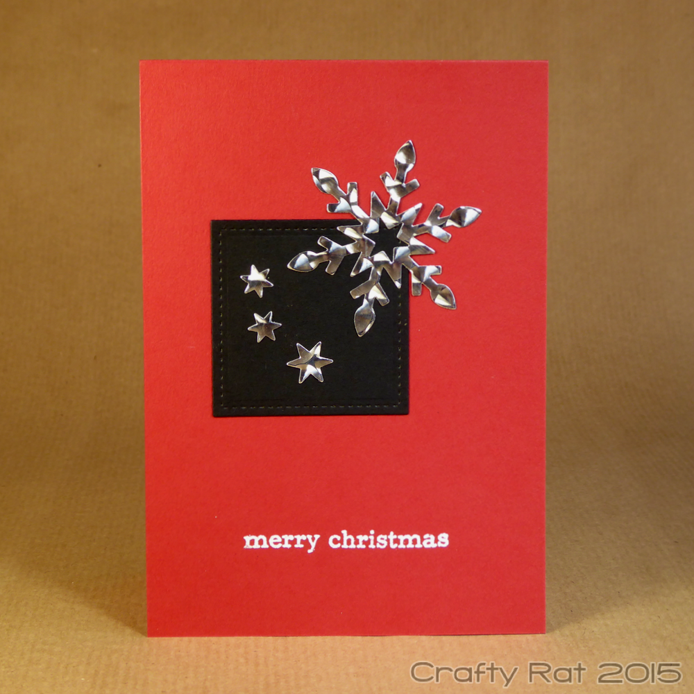 For the other card I die cut a small stitched square and played around with the positioning of it and some snowflake pieces. Once I had a simple layout I was happy with I stuck them in place.
