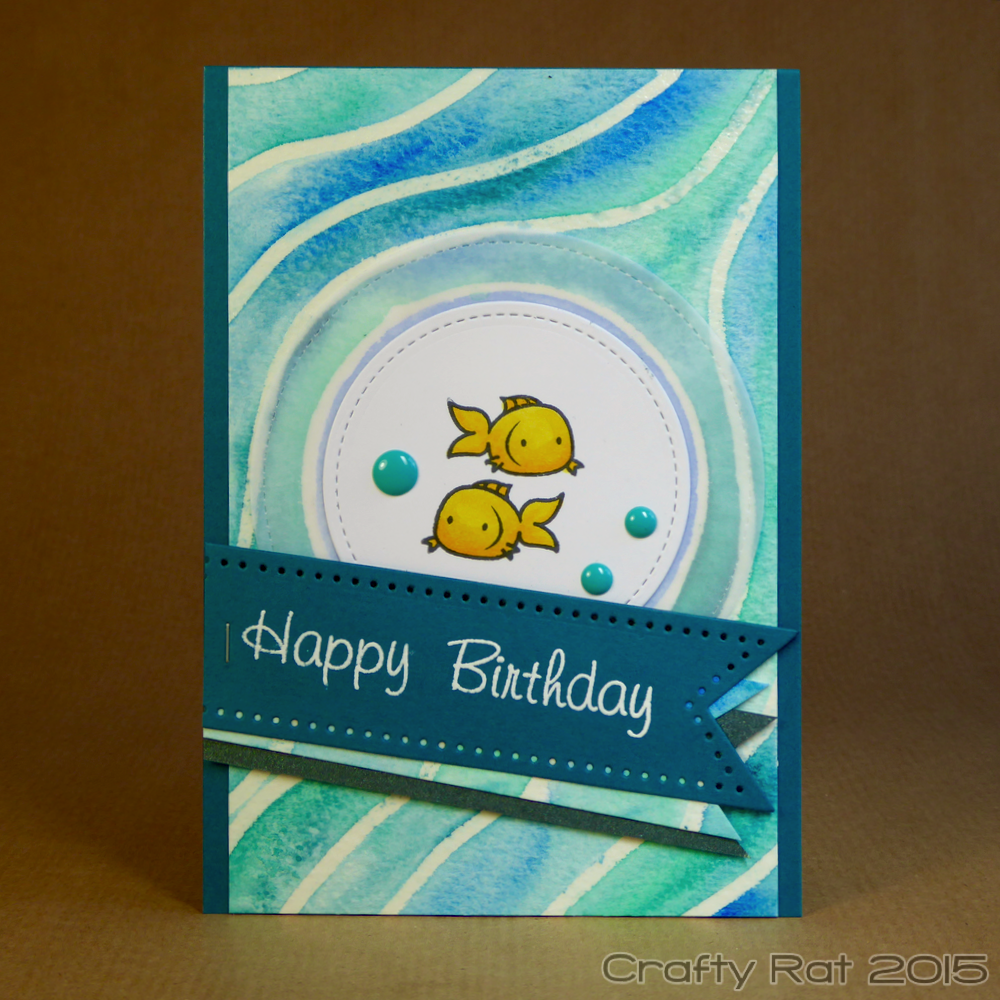 The fish had been stamped in Memento ink on Neenah solar white card and coloured with Copic markers.