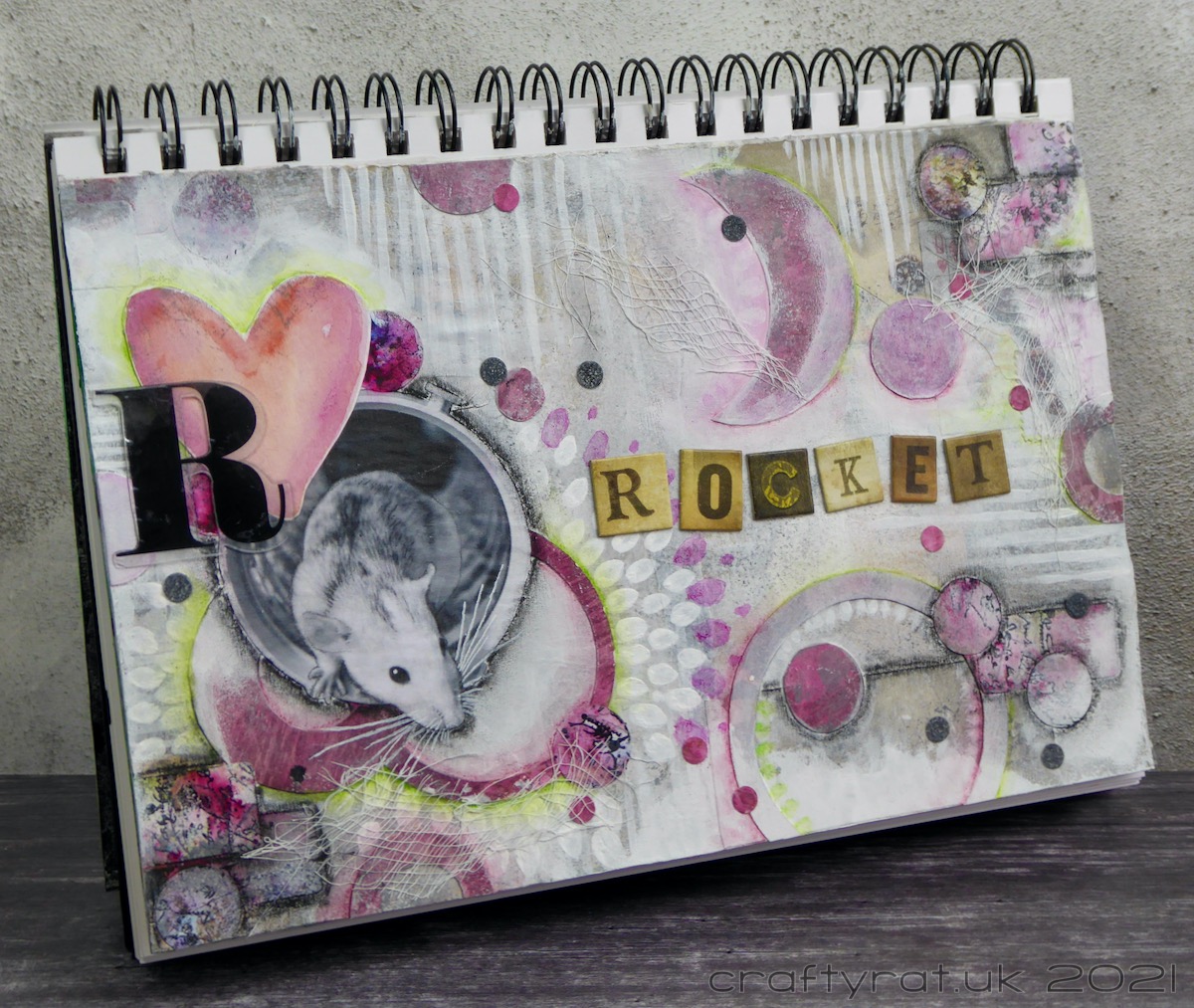 Anyway, back to the issue of choosing a focal image. At some point, after much background processing, I realised that I could use a family member of sorts and I knew just which photo would work well on the page. Rocket was an occasionally temperamental rat with a lot of personality and I really enjoyed putting this page together for her.