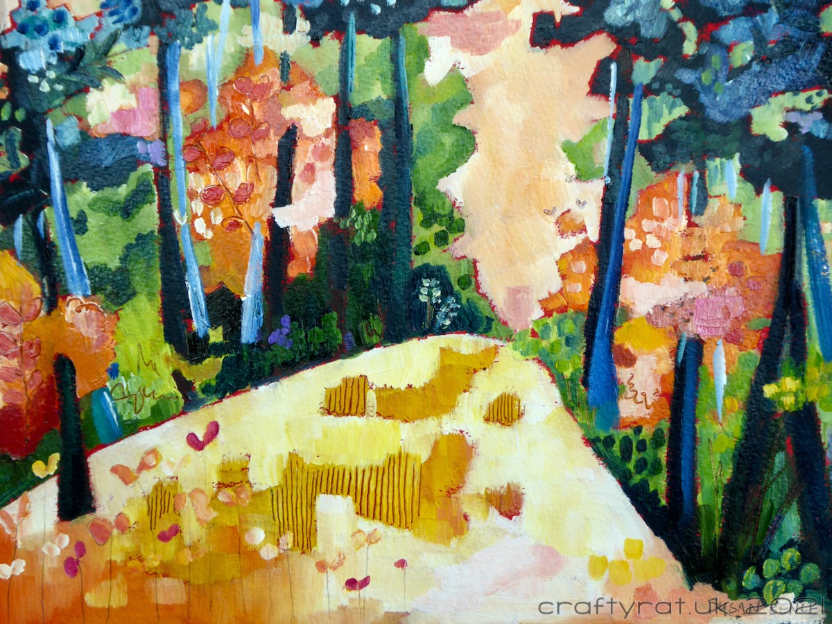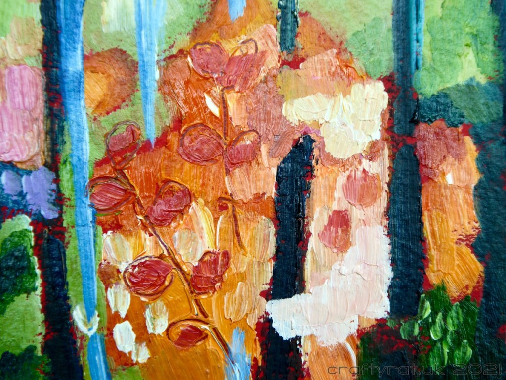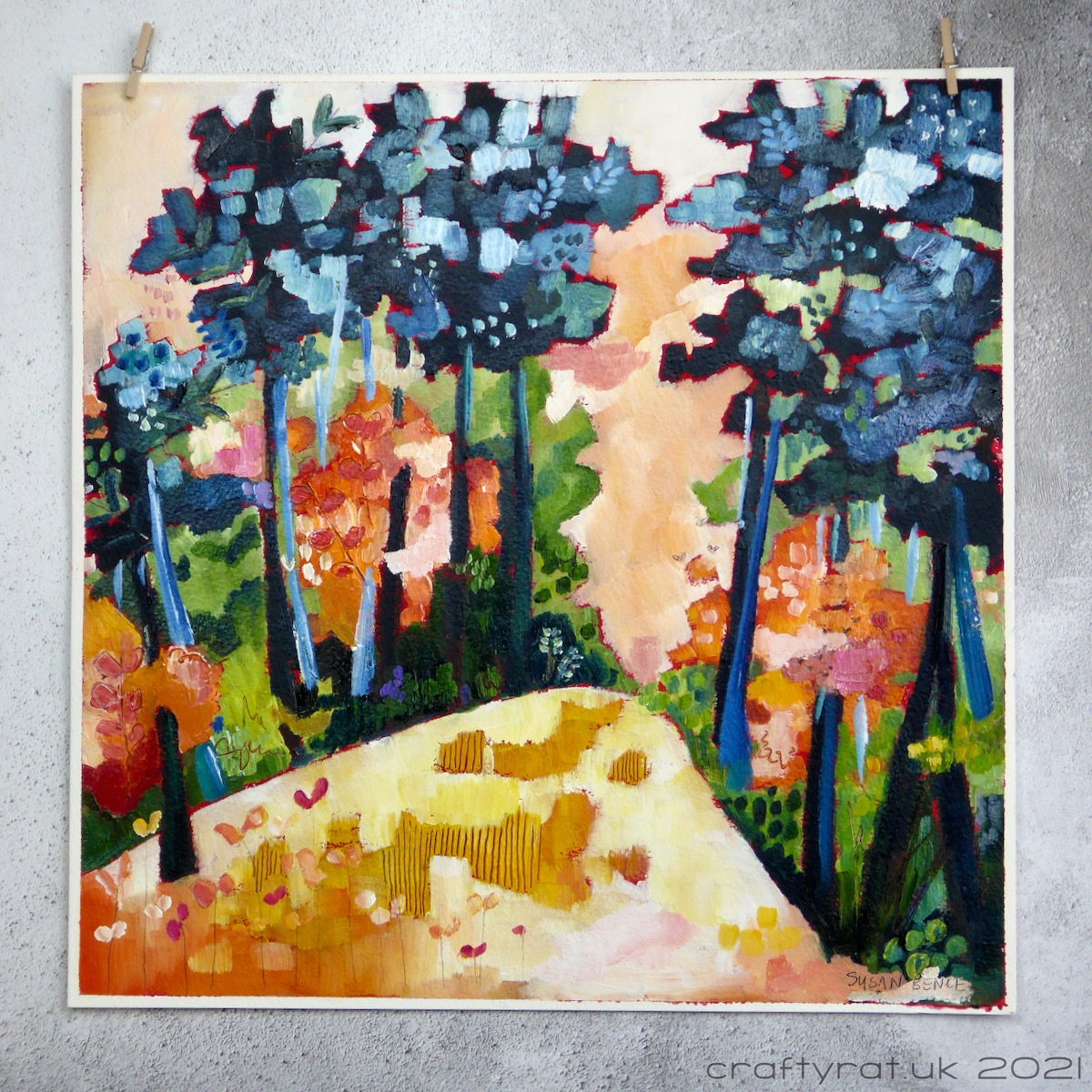 I’d been following Susan on Instagram for a while when I decided to treat myself to one of her paintings. I love the intensity and depth of colour in her palette, especially her landscapes, and the way she uses sgraffito to add touches of texture. She is also a very thoughtful person who, realising that I was not having the best of times, sent me a notebook as a gift with the order.