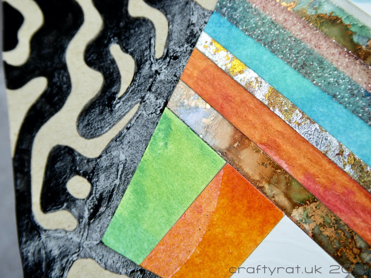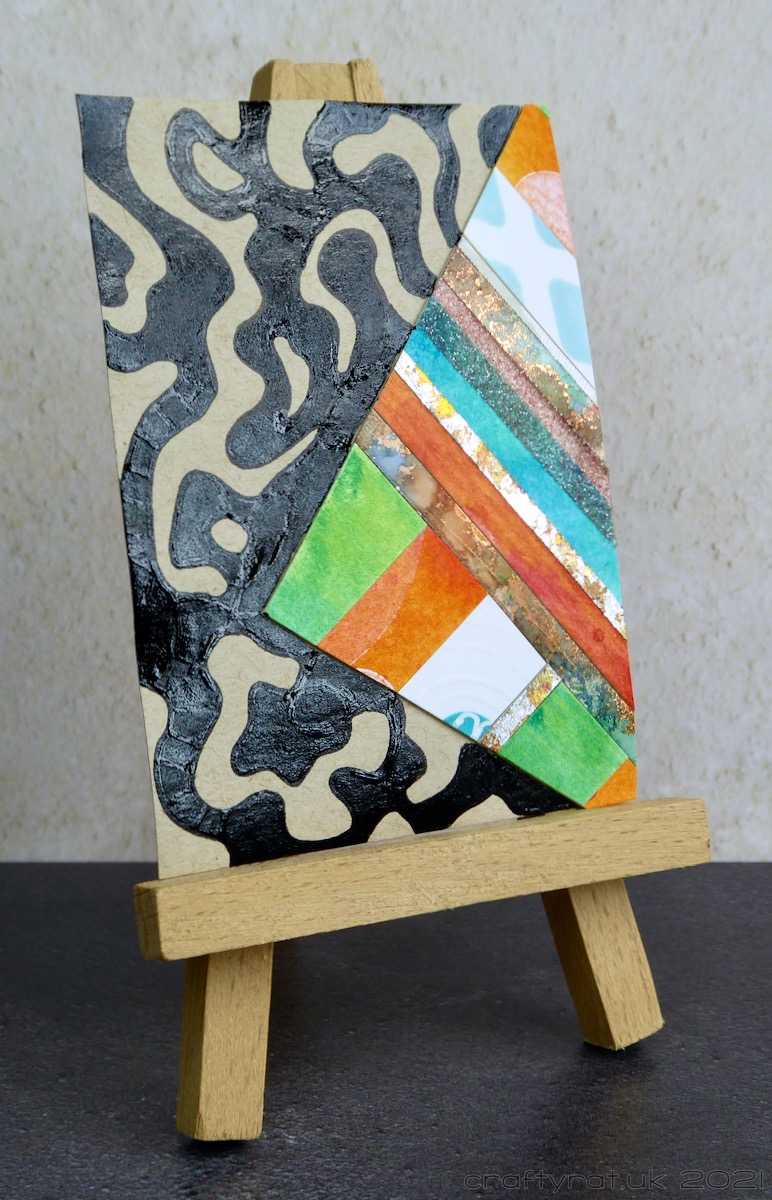 As with the crossing stripes art card, this was a case of creating the stripy piece, gluing it to the art card and then figuring out what to do next.