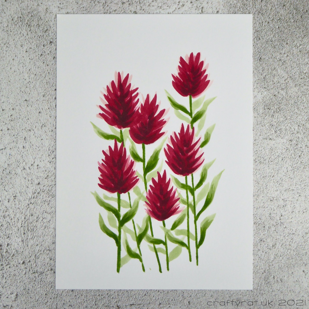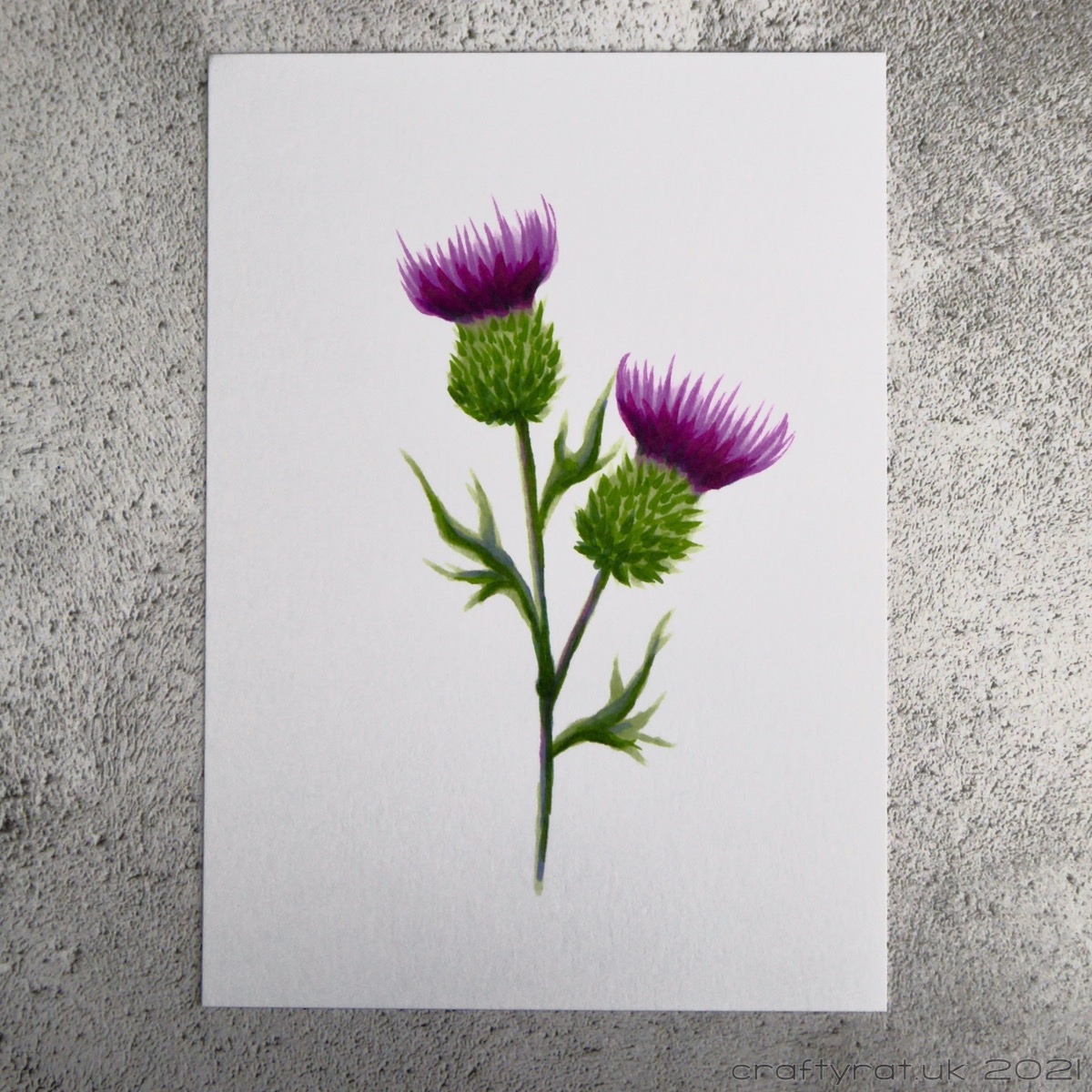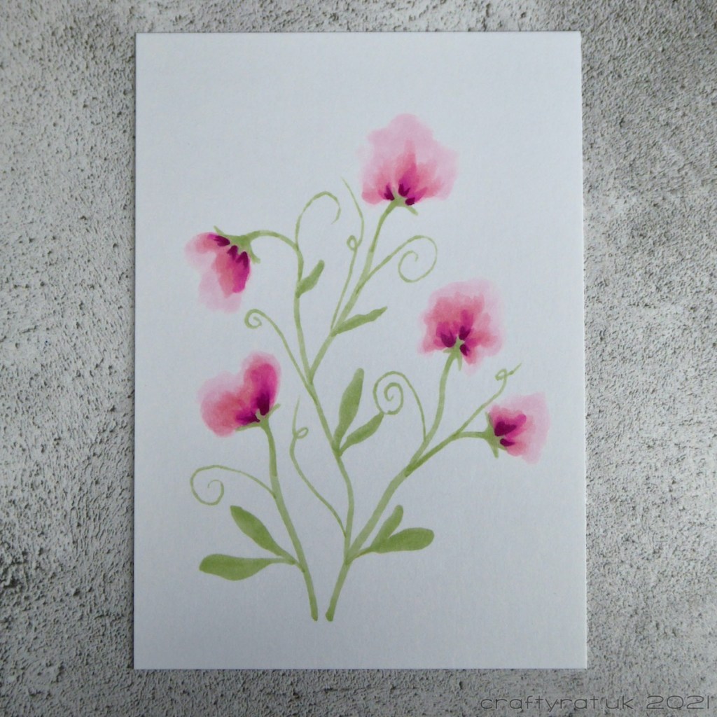 My favourites are the thistle and the sweet peas; the thistle because it feels the most representative of the real flower and the sweet peas because they were the hardest to approach — the flowers are so floaty and ill-defined but the technique for creating them works.