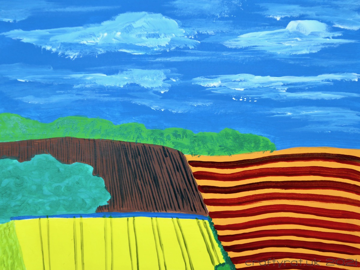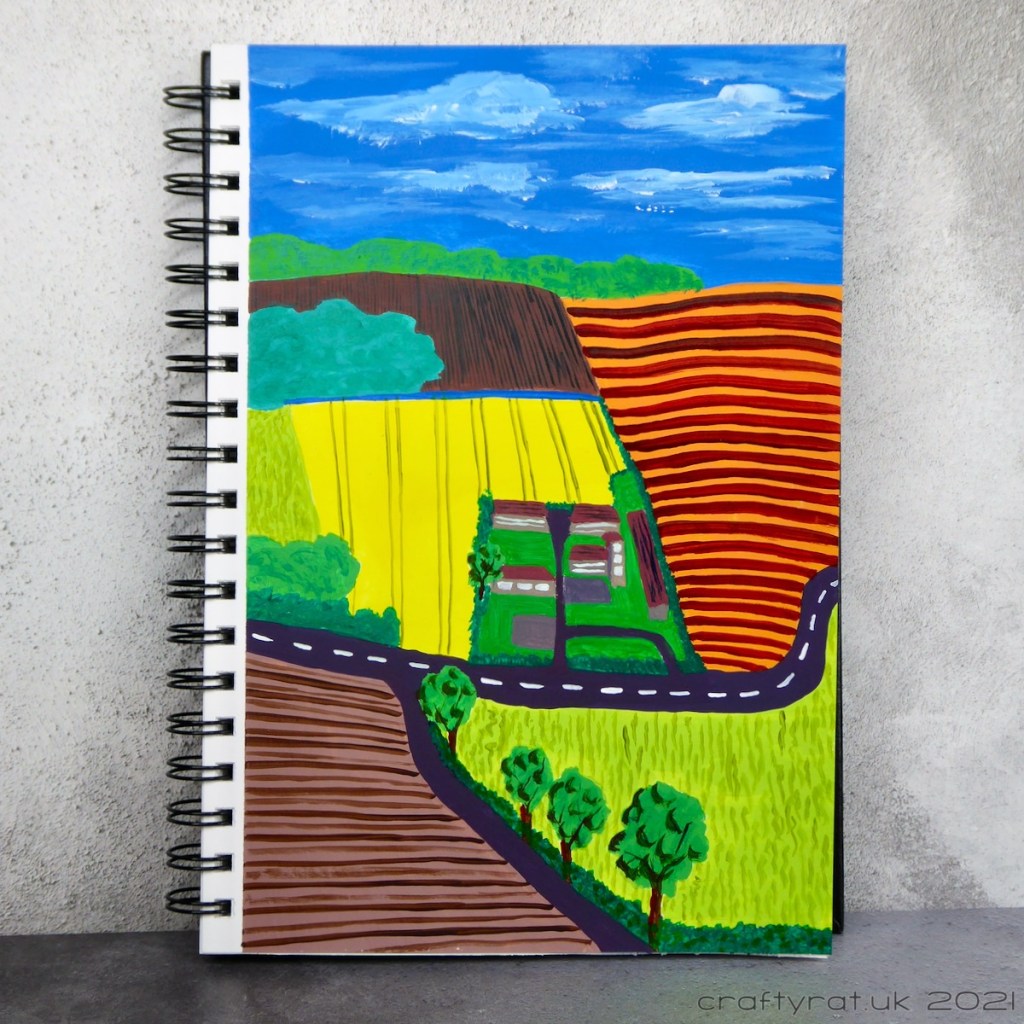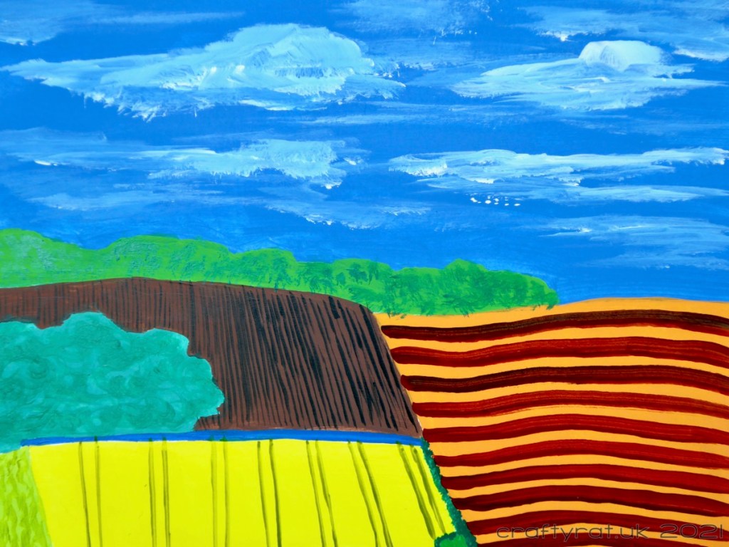The idea was to look at David Hockney’s style of landscape painting with its often contrasting colours, simplistic perspective and proportion, and mark-making, and then apply that to a landscape that we are familiar with.