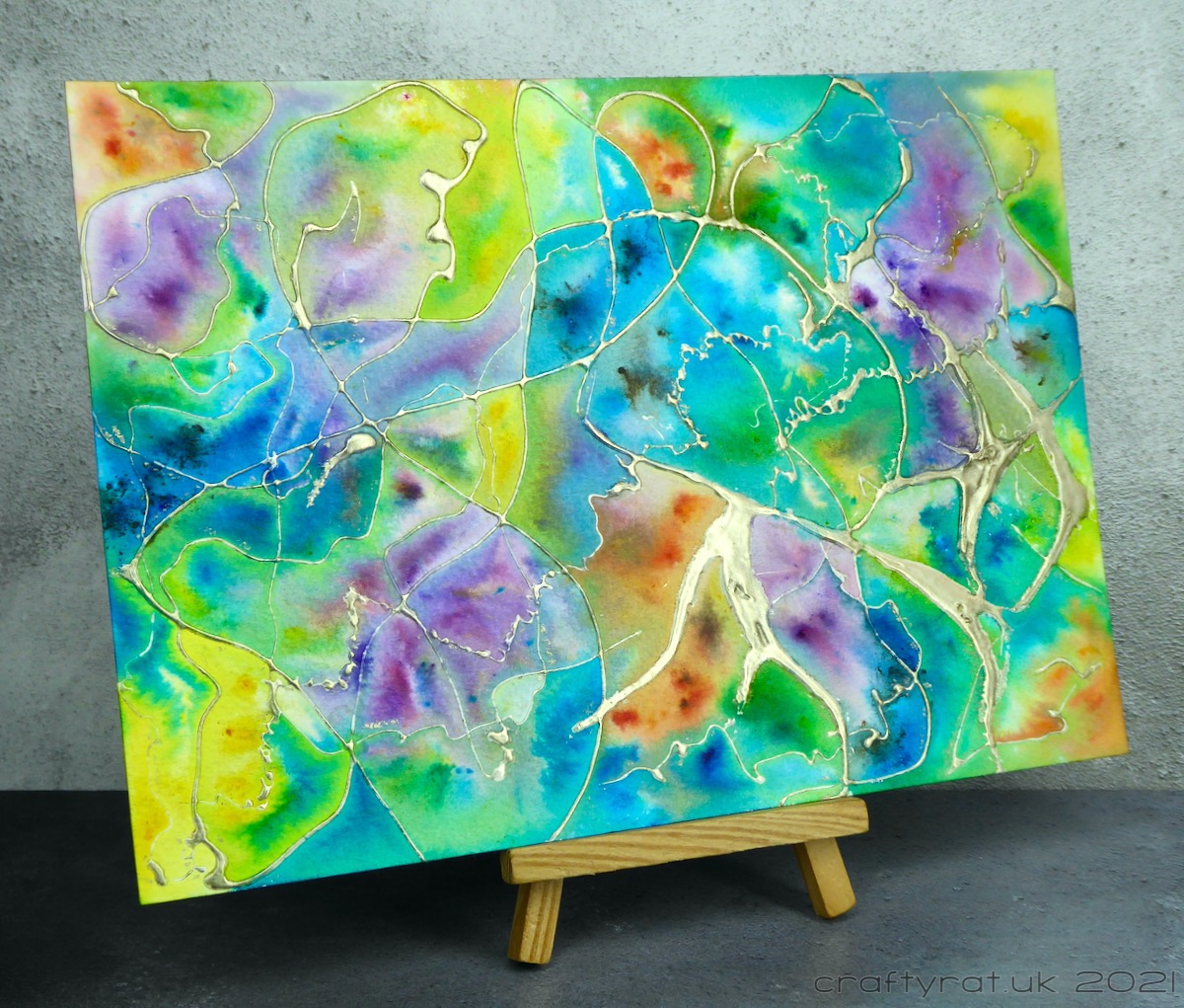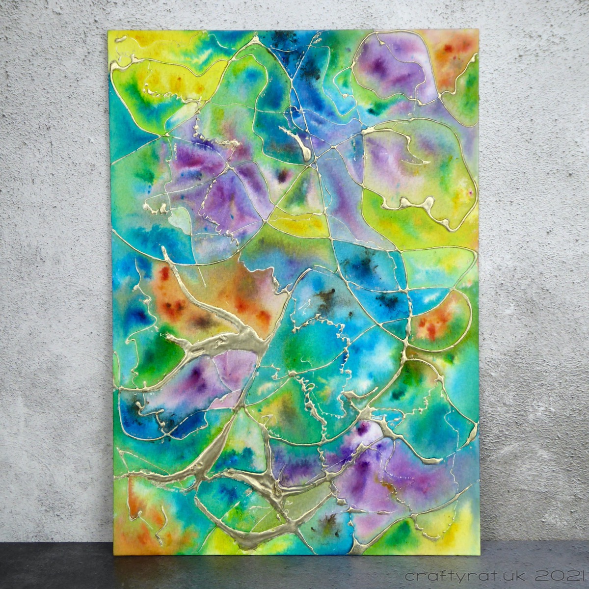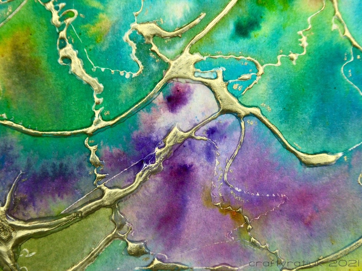 It was fun to do, though it does require a lot of patience as both the tar gel and the Brusho work best if left to dry naturally. I have no idea what I’ll use it for, probably cut it up into smaller panels and maybe even try die-cutting some of the bits where the tar gel is thinner.