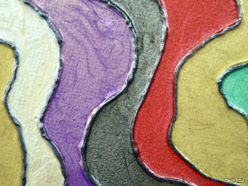 Again, I was limited to the six colours in the set and, again, it didn’t create the textured finish that it should (in this case a hammered effect). The gentle swirls in the dried pant are quite pleasing though.