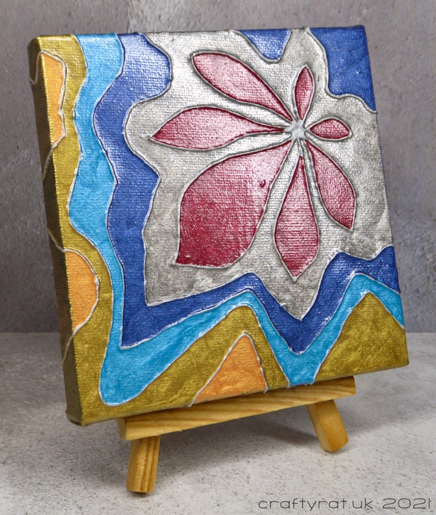 I have another couple of canvases the same size as these (5″ square) and I’m thinking about making some more of these: a set of four could look nice on the wall.