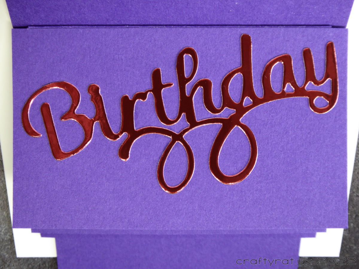 I die-cut the words and numbers for the inside from various scraps of card and carefully glued them in position so they wouldn’t peek out from underneath the previous flap when the waterfall was closed.