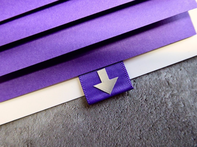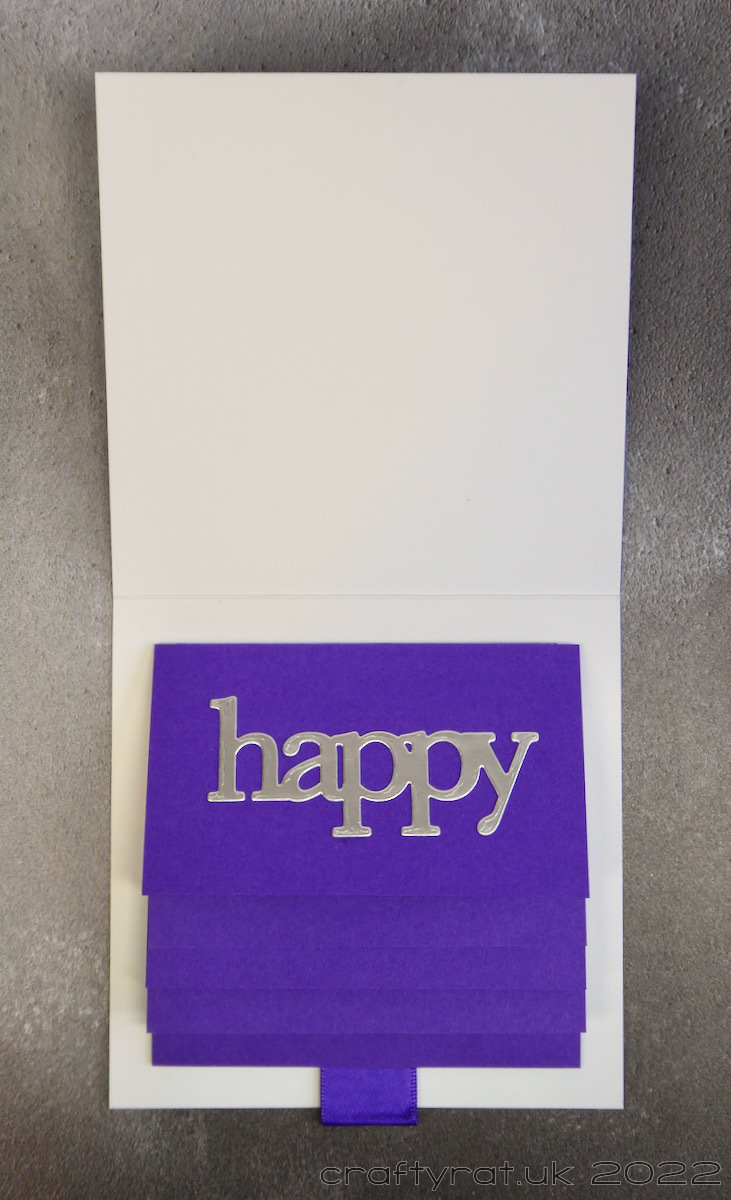 I added a piece of folded ribbon as a pull tab. I was just about to seal the card in the envelope when I suddenly thought “is it obvious that you have to pull the tab?”, “would an 18 year old with no interest in card-making actually realise what this is?”. And that was the point at which I went back, cut an arrow out of the silver card and glued it to the ribbon. The cheque I folded up on the last panel has since been cashed so it did work 🙂
