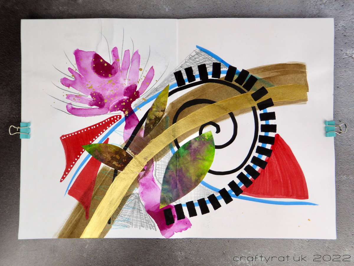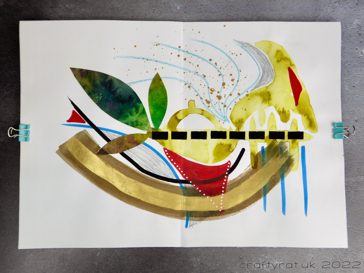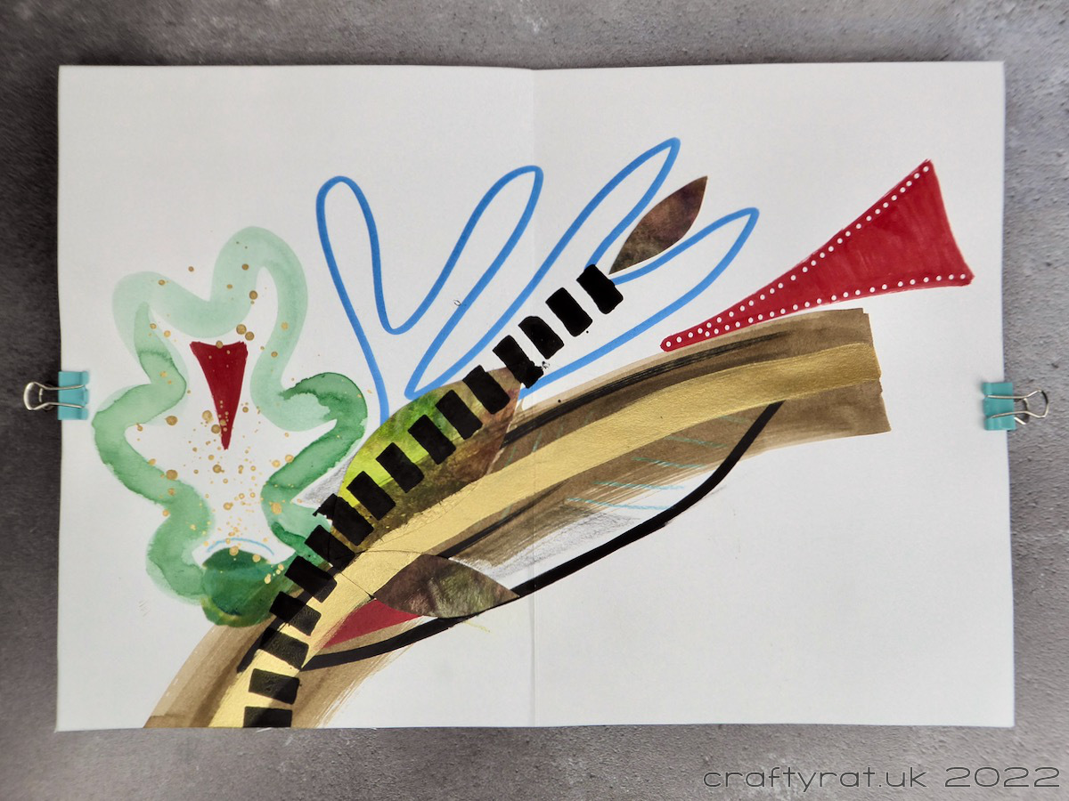 Last month I did Helen Wells’ Art Journal Joy class. It’s a short class demonstrating one of the ways Helen develops ideas; the aim is not to create a finished work of art, but to experiment and maybe find some interesting combinations of shapes, colours or supplies that spark a bigger idea.