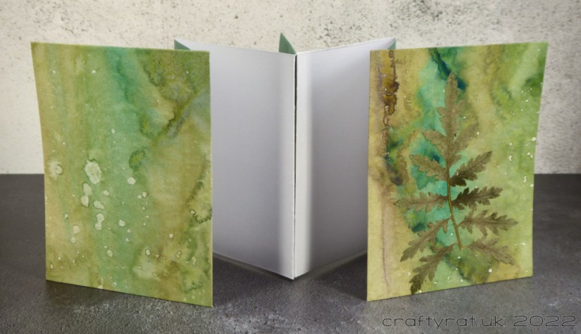 One class that did not require cool temperatures involved making a Flutter Pocketbook. I’ve had a look at various one-page booklets before — though I don’t remember ever getting past the “seeing how it works on a bit of plain paper” stage before — mostly the ones made from a sheet of A4 paper, so this was different because it starts with a 12″ square piece and creates pockets on the pages. And I’m not convinced about the design. I do like concertina booklets and that element of this does appeal, but I’m really not sure about the central page that just sticks out of the middle. In one variant the instructor, Karen Elaine, tucked a few plain notebook pages into that fold, which might be interesting to try. Alternatively, I could just glue it flat…