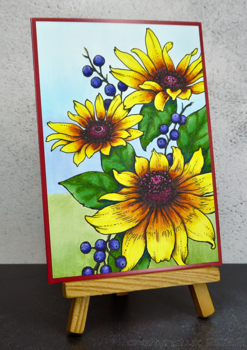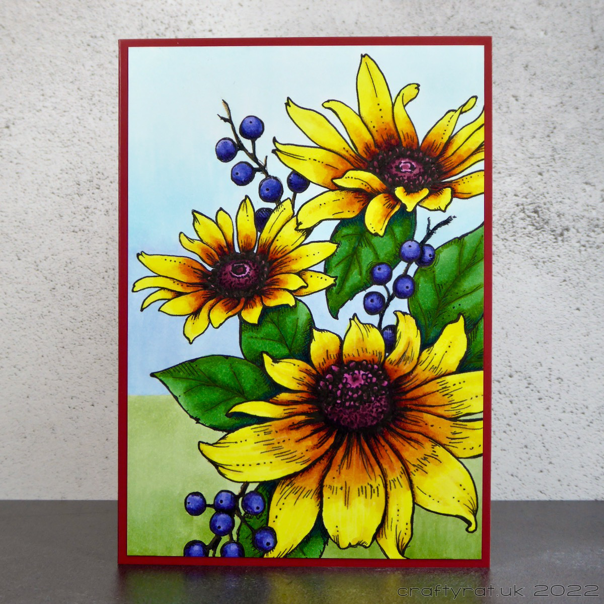 As a change from the pinks and purples I tend to use for floral cards, I made a conscious decision to create this one with a more autumnal palette, which suited these rudbeckias nicely.