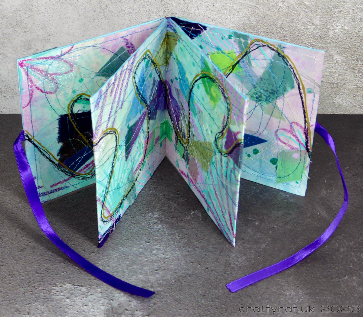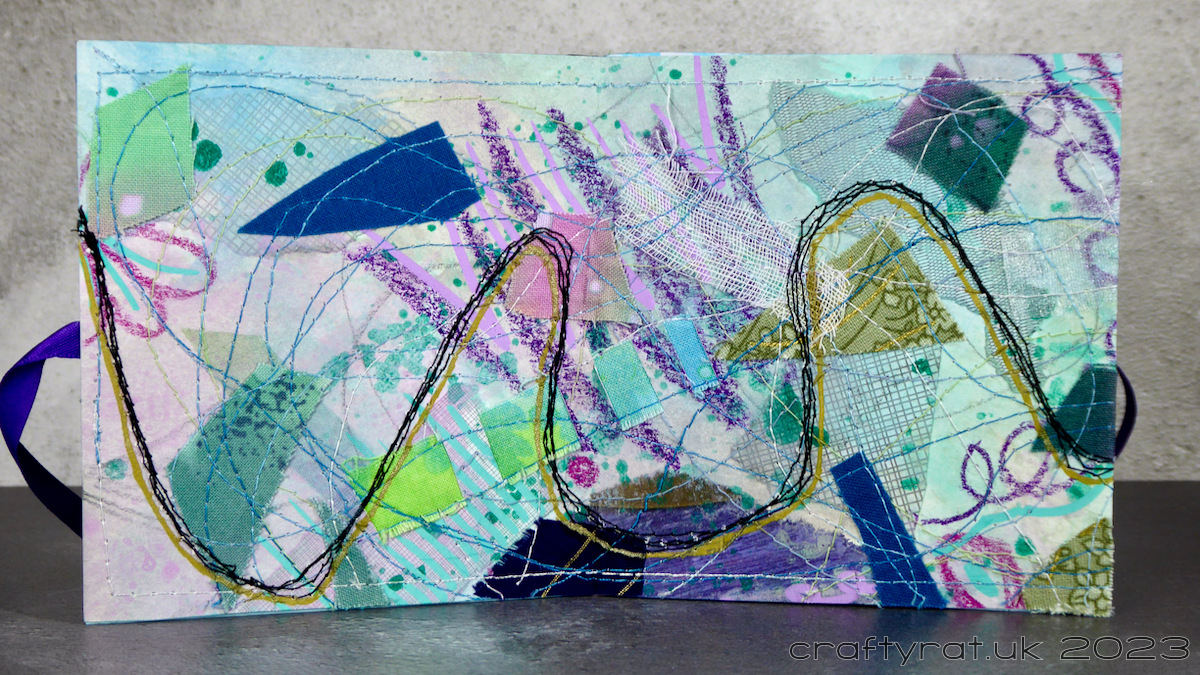 The one thing I was less comfortable with was not knowing what the end result was going to be. We started with one piece of paper and one of lightweight card and each lesson added some more colour or fabric or stitching and only at the end did we know we were making a little booklet. Not that I would have done anything different if I had known at the start. And I really do appreciate the desirability of being able to play and not being so focused on the end result. But part of me still really wanted to know what we were doing…