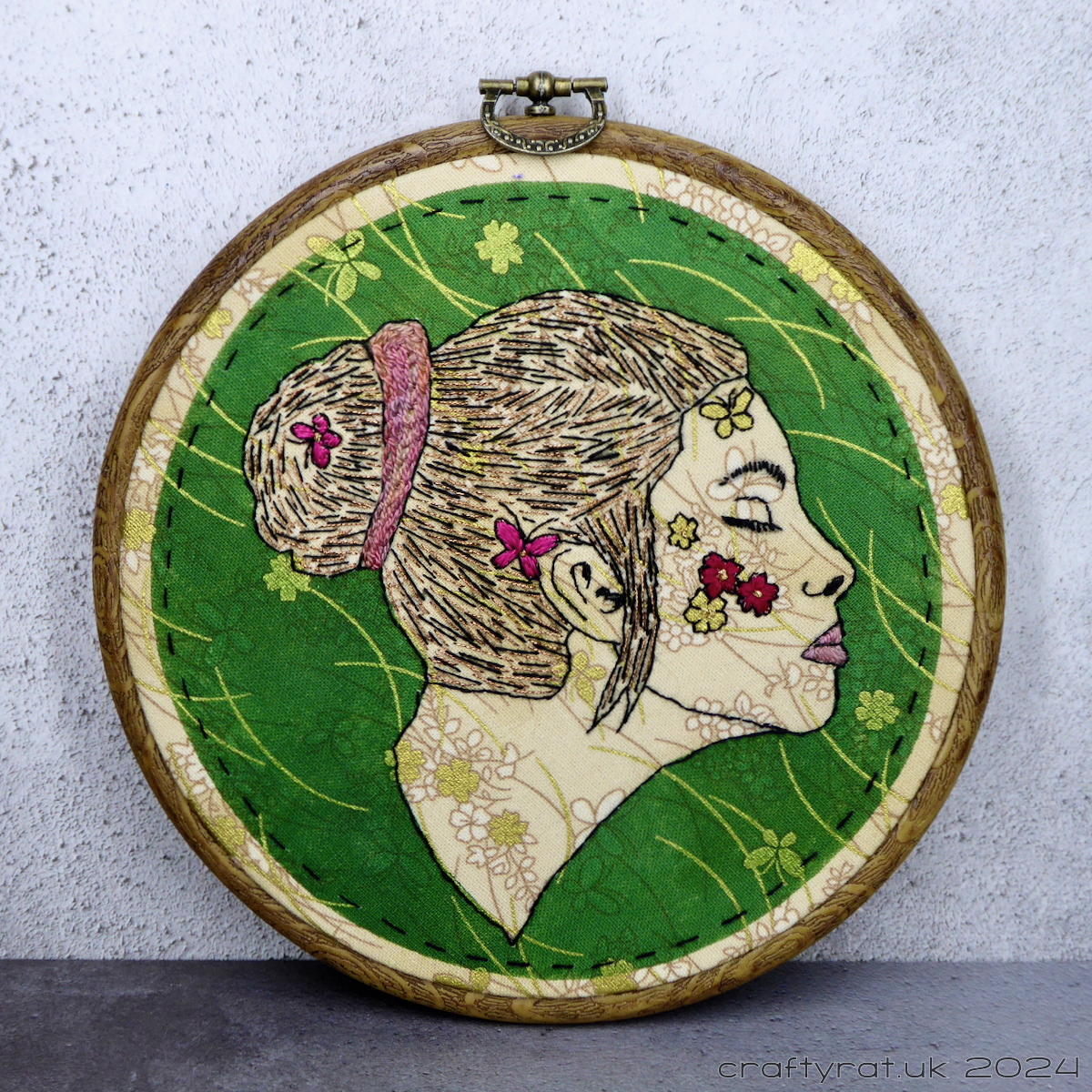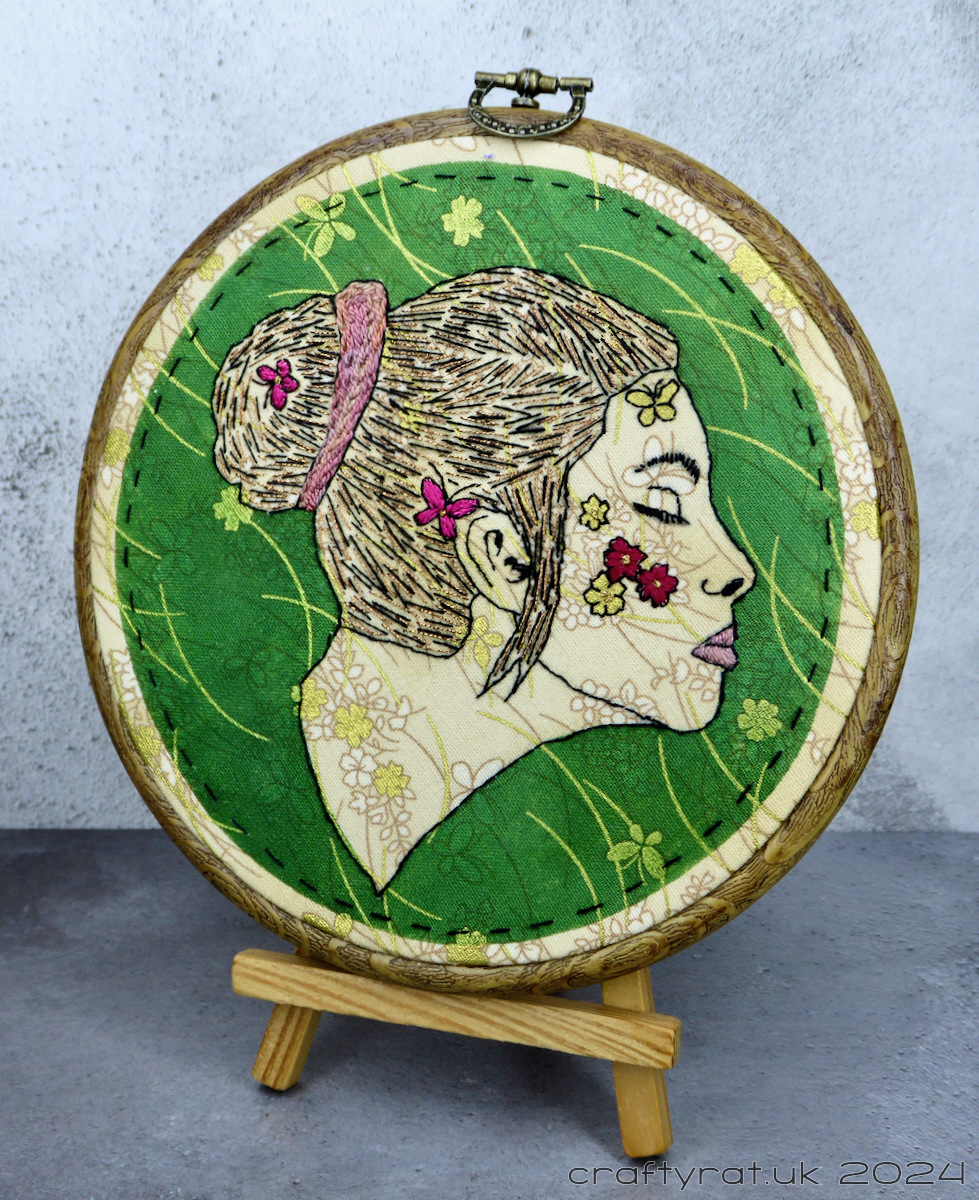 Now I was happy with it and it felt properly finished. I mounted it in a display hoop and tidied up the back by stitching on a circle of felt.
