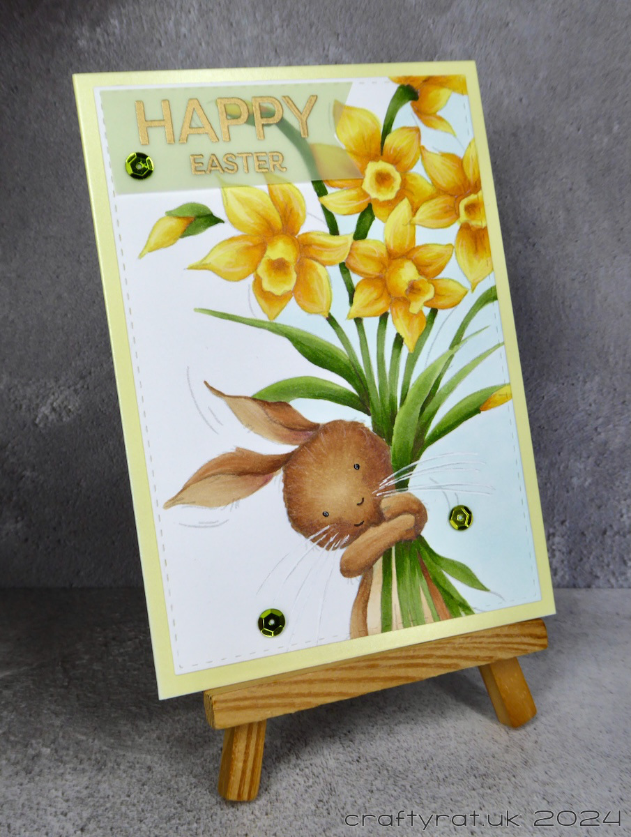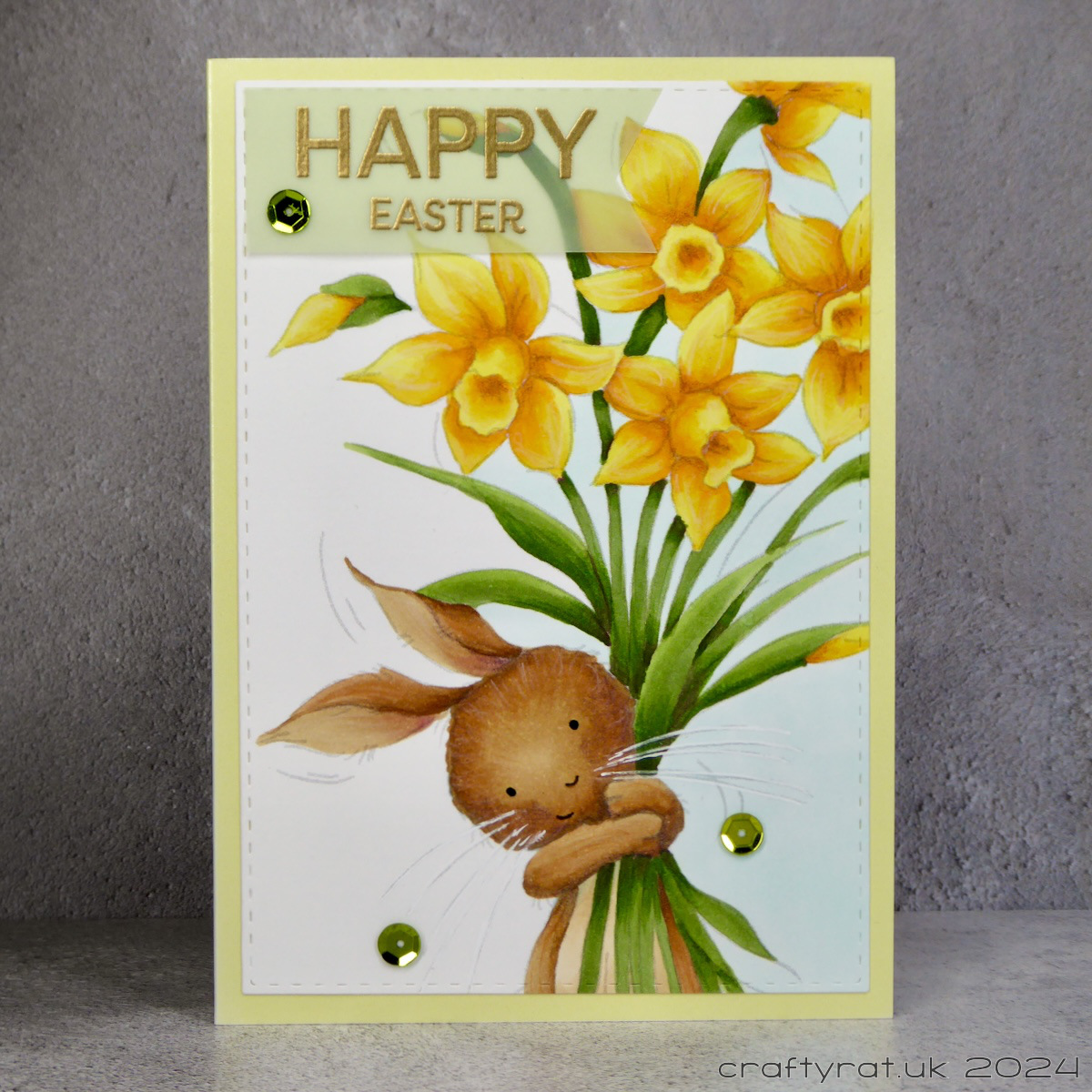 Of course, it helps that I already had the idea for the card as that is usually the thing that takes the longest time. I chose to use the same digi stamp as I used on the only other Easter card I made this year, ideally it would have been a mouse rather than a rabbit for my mum but I really didn’t have time to go on a digi stamp hunt.