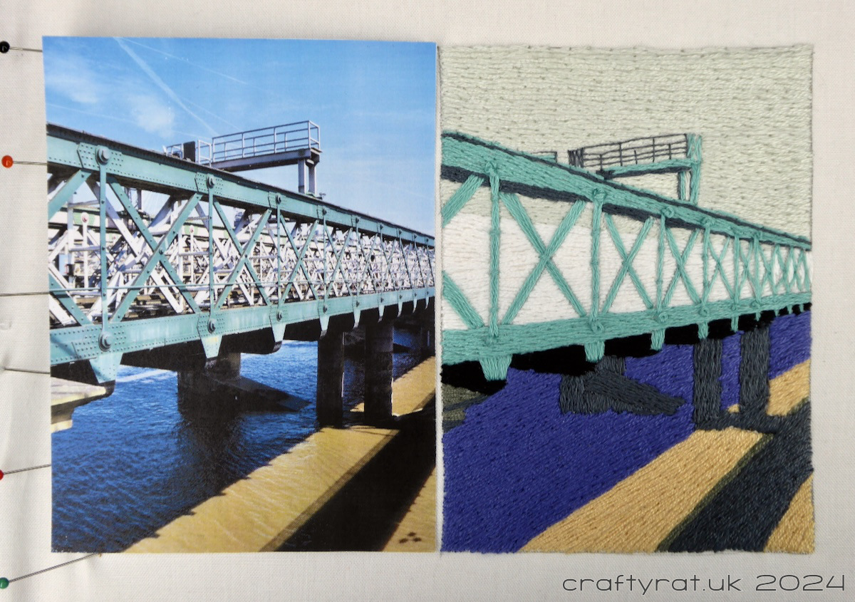 This was very much a project in two halves. The first part involved finding a photo I wanted to recreate and stitching it. This took a while. I had to find a photo that I thought would work well with Ruth’s grungy, distressed style and that would also be simple enough to recreate in stitch.