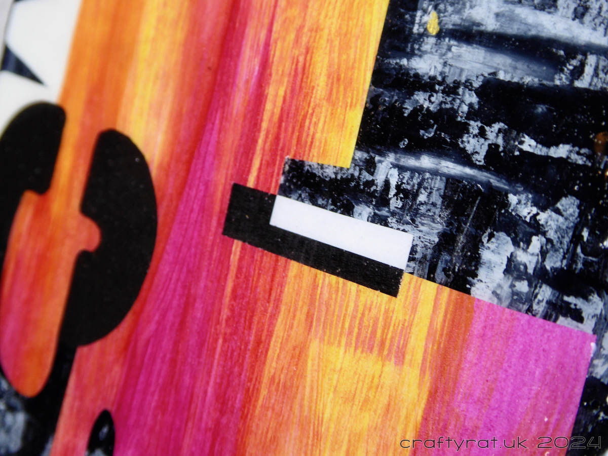 Along with the black textured paper (another from my painted stash), I knew I wanted to use some letter shapes. Luckily I had saved some large text from a magazine and just had to choose a few letters and fussy cut them out.