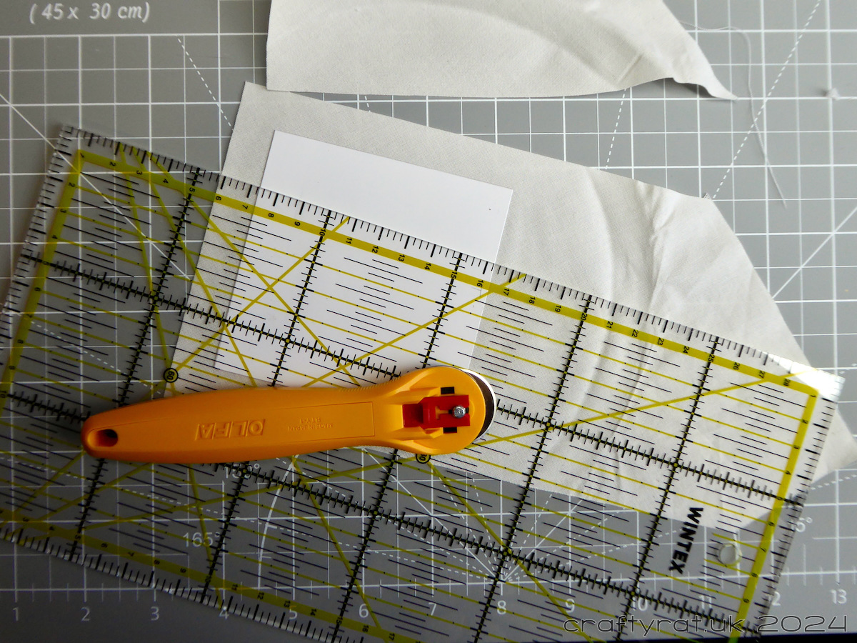 Next I trim the excess fabric away, cutting about 15mm away from the edge of the card.