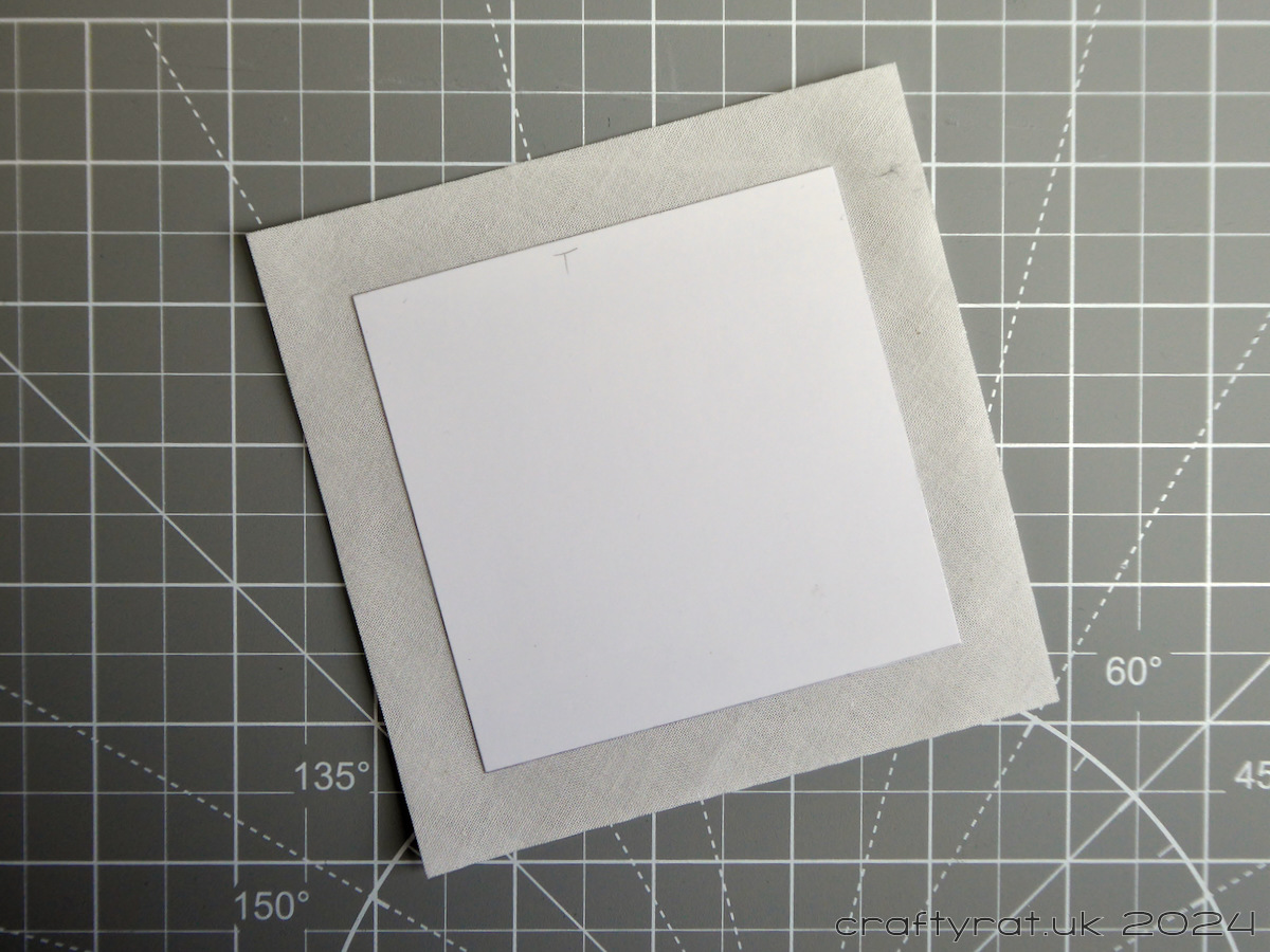 While I’m cutting card, I also cut a 126mm square from lightweight card. I’ll use this later to cover the back of the mounted embroidery and make everything look tidy.