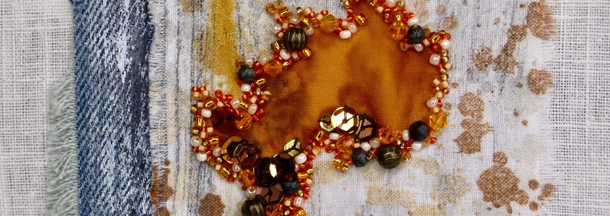 A fabric collage created with paint, ink, beads and sequins. Inspired by rust, urban decay and the inconsequential, overlooked details in the environment.