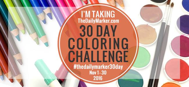 The Daily Marker 30 Day Colouring Challenge is back. Or at least it will be soon. Kathy Racoosin has just announced that the next challenge starts on November 1st and continues for the whole of the month, which is conveniently thirty days long making it near impossible to lose track of how far through the challenge… Continue reading Get your markers ready…