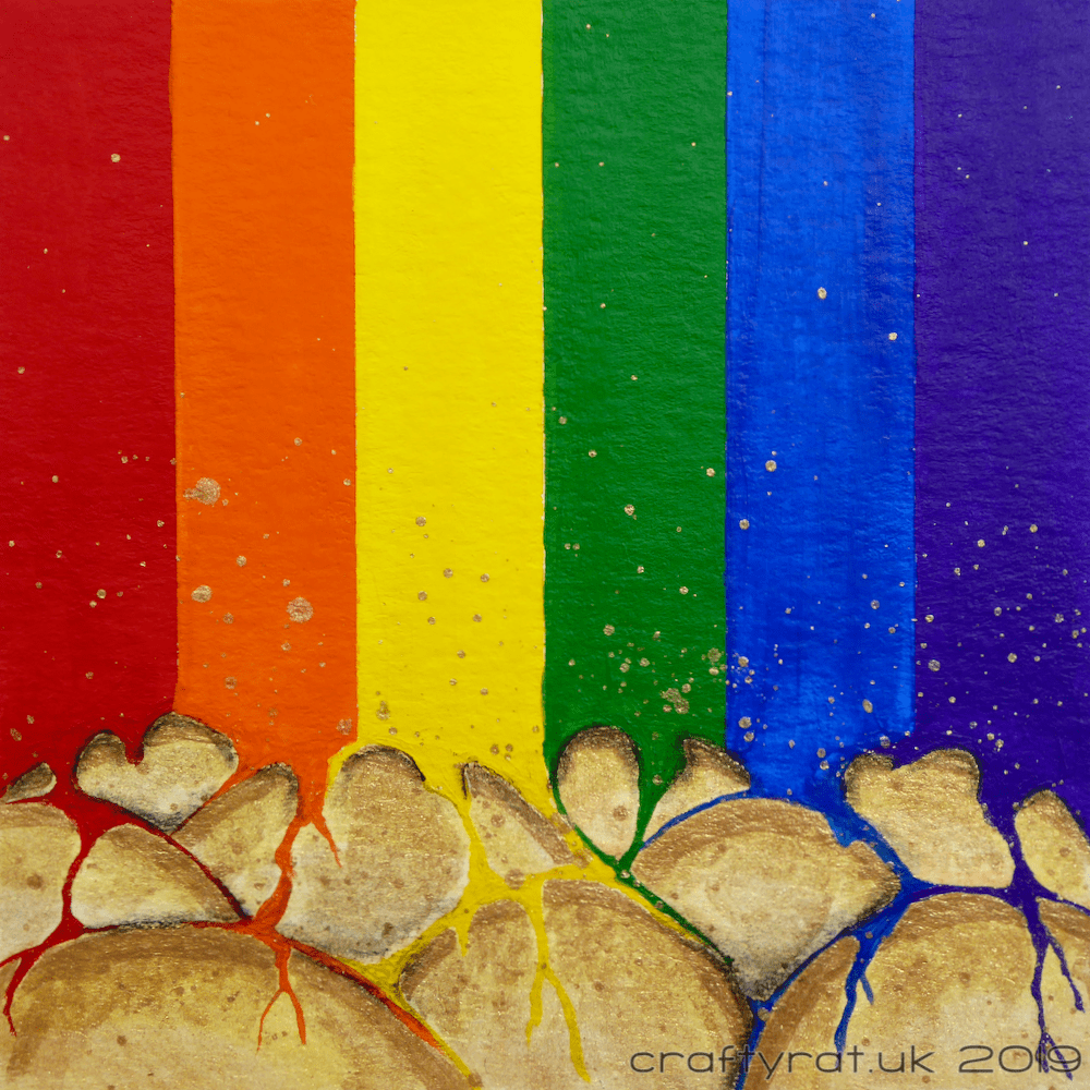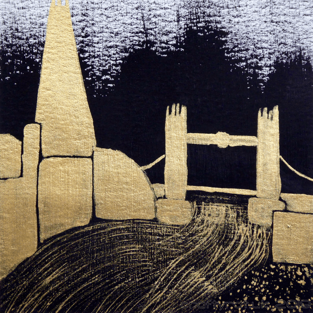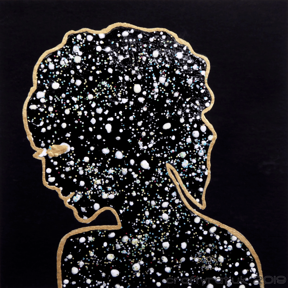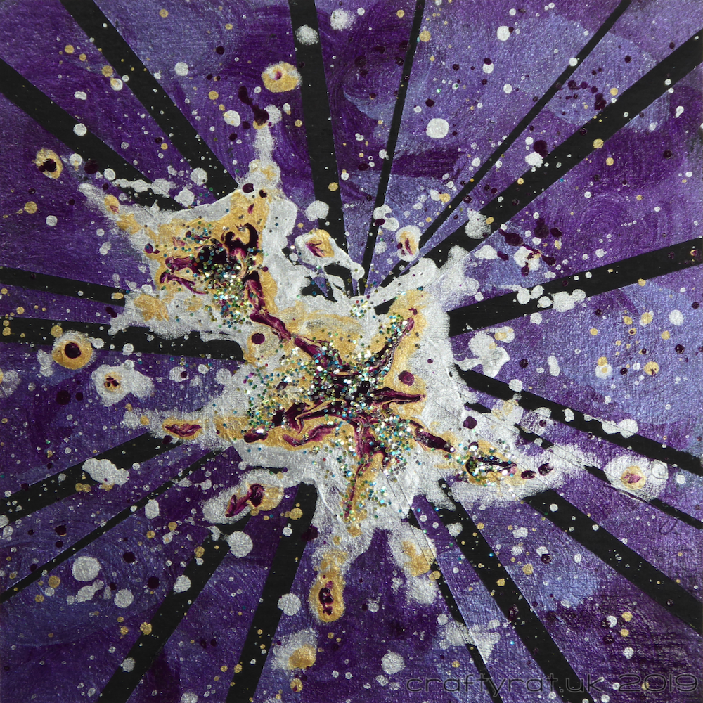 The first challenge with prompts that I have ever completed. Sixteen small square paintings, all with a touch of metallic paint.