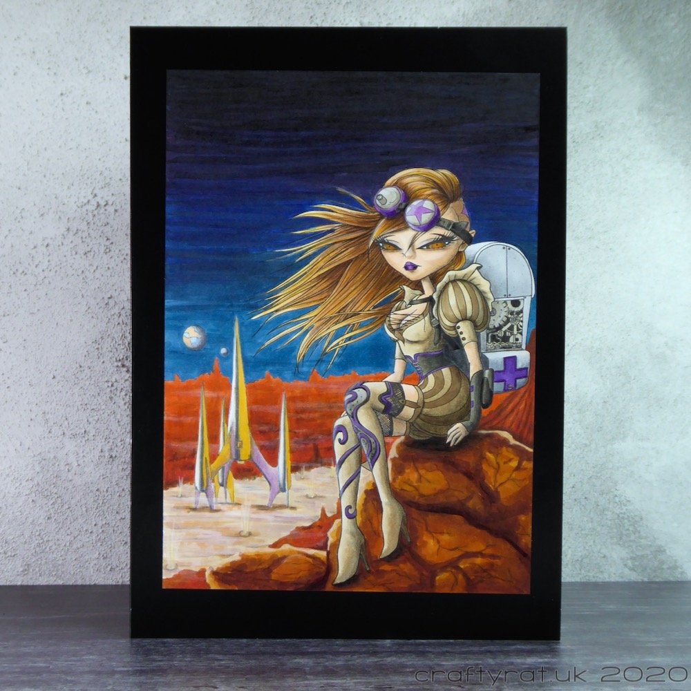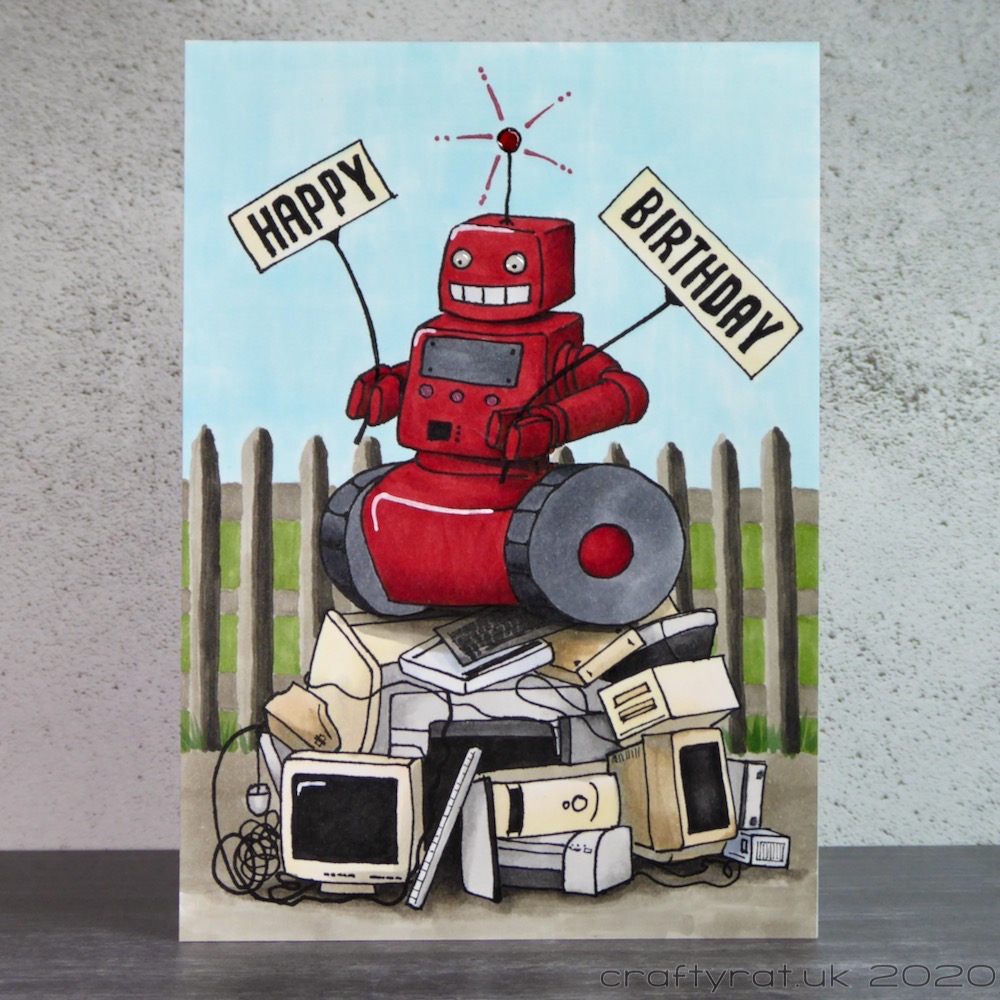 Other than Christmas cards, I only made fourteen cards this year and one of those was just repurposing a piece of art from last year. As usual there was a lot of Copic marker, well over half the cards, but there was quite a mix of techniques in the rest with watercolour, paper craft, stamping and even alcohol ink making a showing.