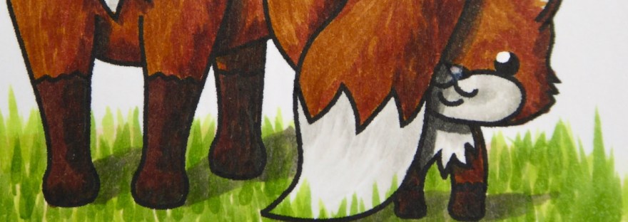 Copic markers: fox, white fur - W00, W1, W3fox, brown fur - YR27, E08, E29fox, feet - E29, E49, W10cast shadow - W7grass - YG03, YG17, YG25grass shadow - W5 Supplies: digital stamps:Isabel Cristina - mama and baby fox (free)paper and card:Neenah solar white 216gsm This image was coloured in February 2018.