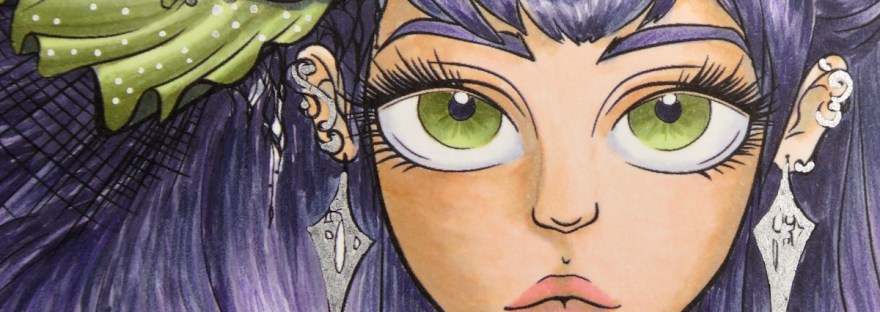 Copic markers: skin - E000, E53, BV20lips - R20hair - BV29, BV25, V28, V25, V22, V20green - G94, YG63, G21, YG11flower - C00, C1, C3, C5, C7 Polychromos pencils: hair - 137 blue violet, 141 delft blue, 157 dark indigo Supplies: digital stamps:The East Wind - witcherypens:Molotow - liquid chrome 1mmembellishments:maste washi tape - cosmicpaper… Continue reading Just coloured: witchery