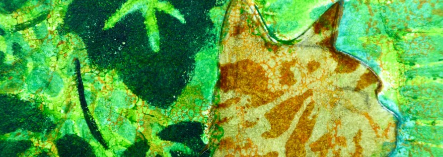 "Embrace imperfection" they said, so I got out my little gelli plate, paints, some leaves, and a piece of grip mat and made an imperfect but interesting page for this Messy May prompt.