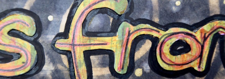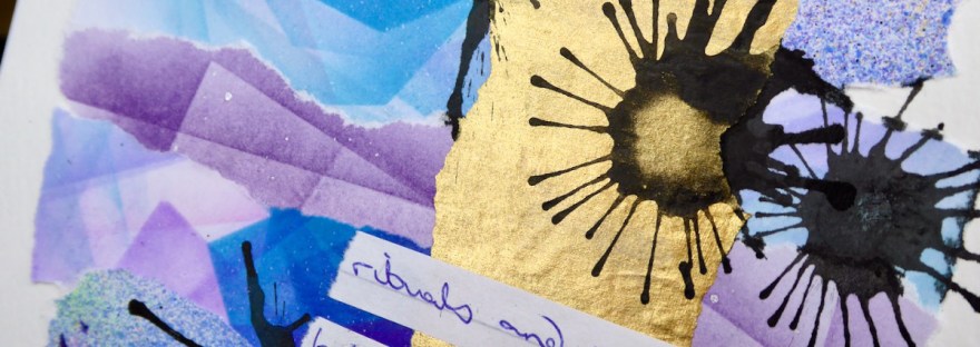 I don't do journalling and I don't usually use words in my art, so creating found poetry from my own writing wasn't easy. The collage and ink splats make me happy though.