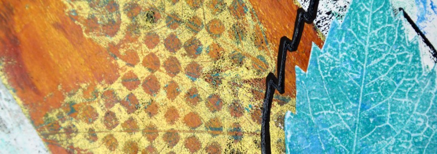 "Embrace imperfection" they said, so I got out my little gelli plate, paints, some leaves, and a piece of grip mat and made an imperfect but interesting page for this Messy May prompt.