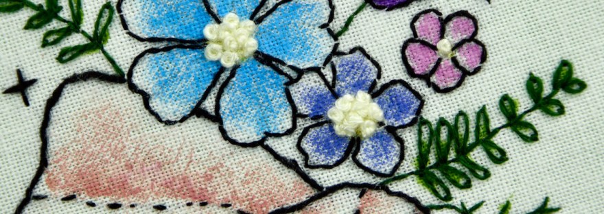I shall be spending January tidying up after 2024, and that includes writing up projects from last year. The first of those is this floral shell paint & stitch card.