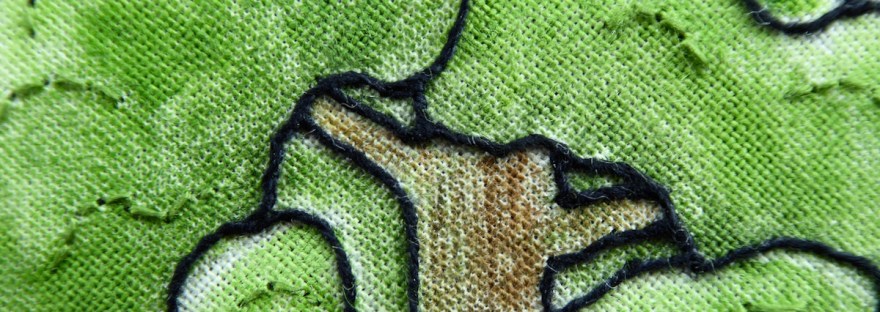 I took one preserved plane leaf and added stitch, couching, and lots and lots of bullion knots and ended up with this response to a prompt to use materials foraged from nature.