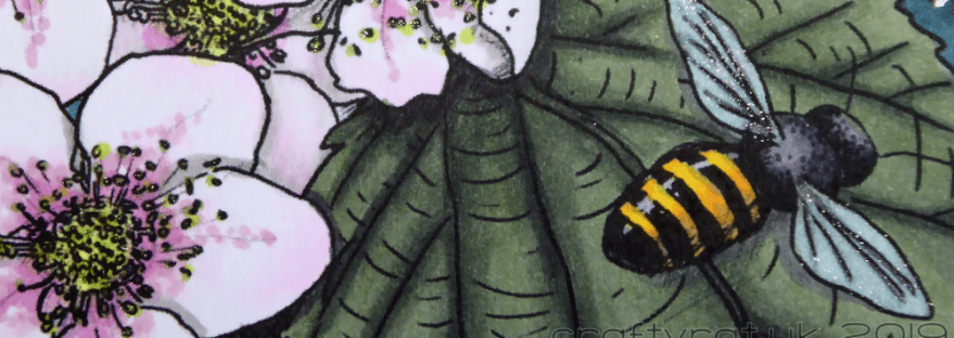 Series: The Daily Marker Art Card #05 I used the full version of this digi stamp to make a birthday card for my mum last year. I coloured this one without looking back at what I'd done before and it turned out completely different: none of the colour choices or shading patterns are the same.… Continue reading Bee on blackberry flowers