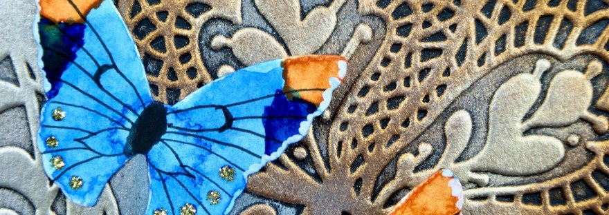 This 3D embossing folder faux cast iron tutorial caught my eye in a Pinterest email and, rather than just file it away as I usually do with these things, I actually got out my Big Shot, some black card, embossing folders and gilding wax, and had a play. This technique would work better with the… Continue reading Watercolour butterflies